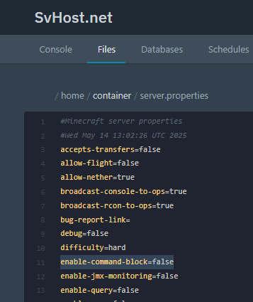 2.- Busca la linea 'enable-command-block', y cambia a true para activar o false para desactivar.